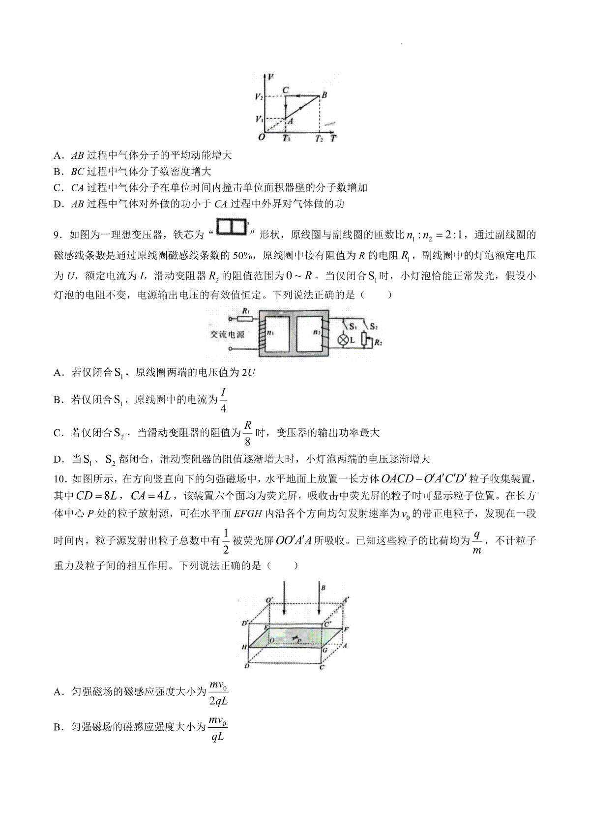 一、石家庄市2023届高中毕业年级教学质量检测(一)物理试题