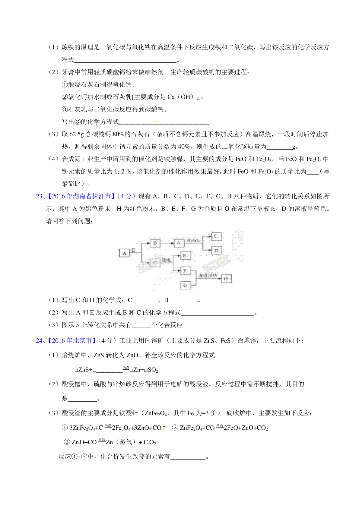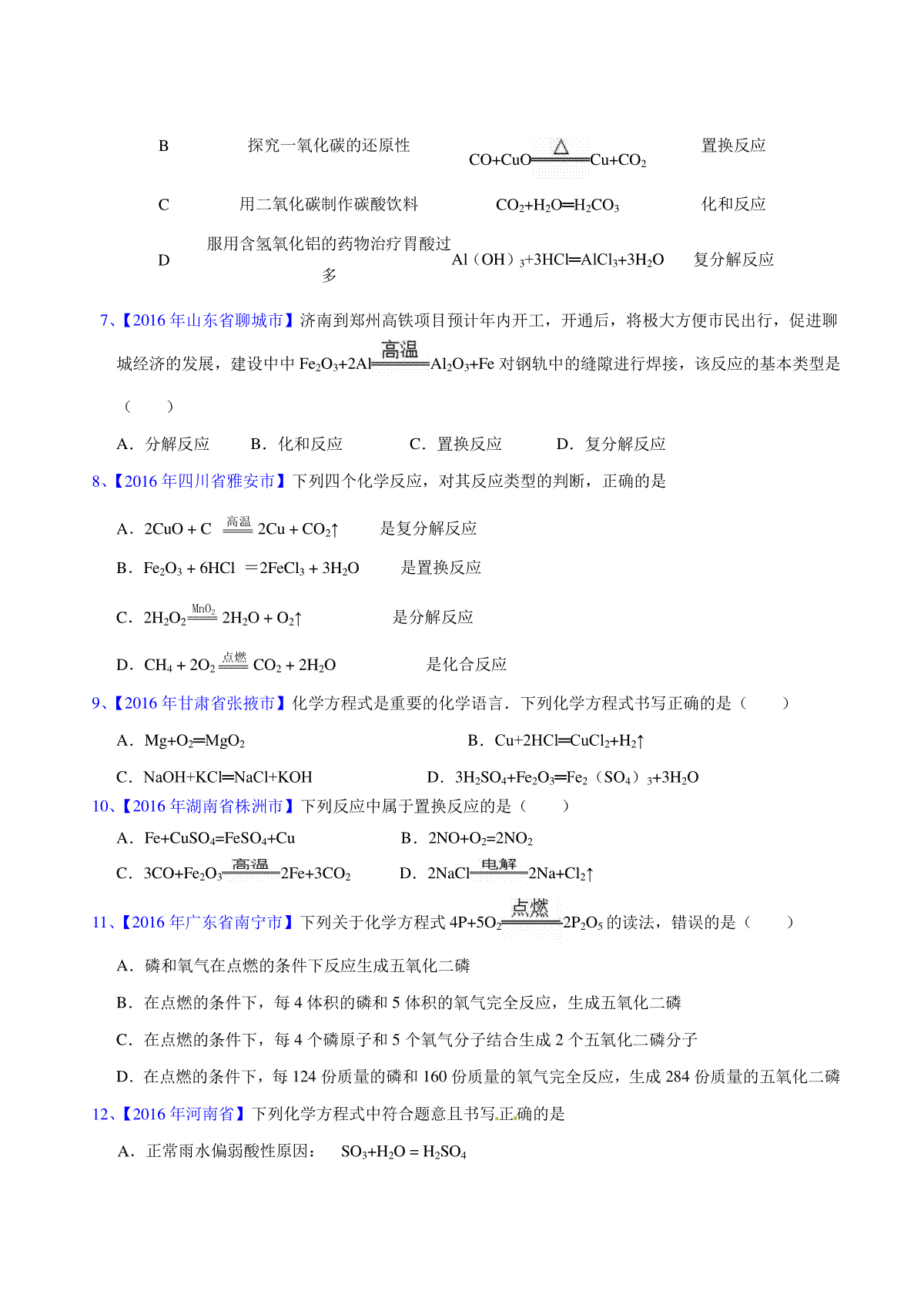 一、专题5.2 化学方程式的书写、计算(第02期)-2016年中考化学试题分项版解析汇编(原卷版)