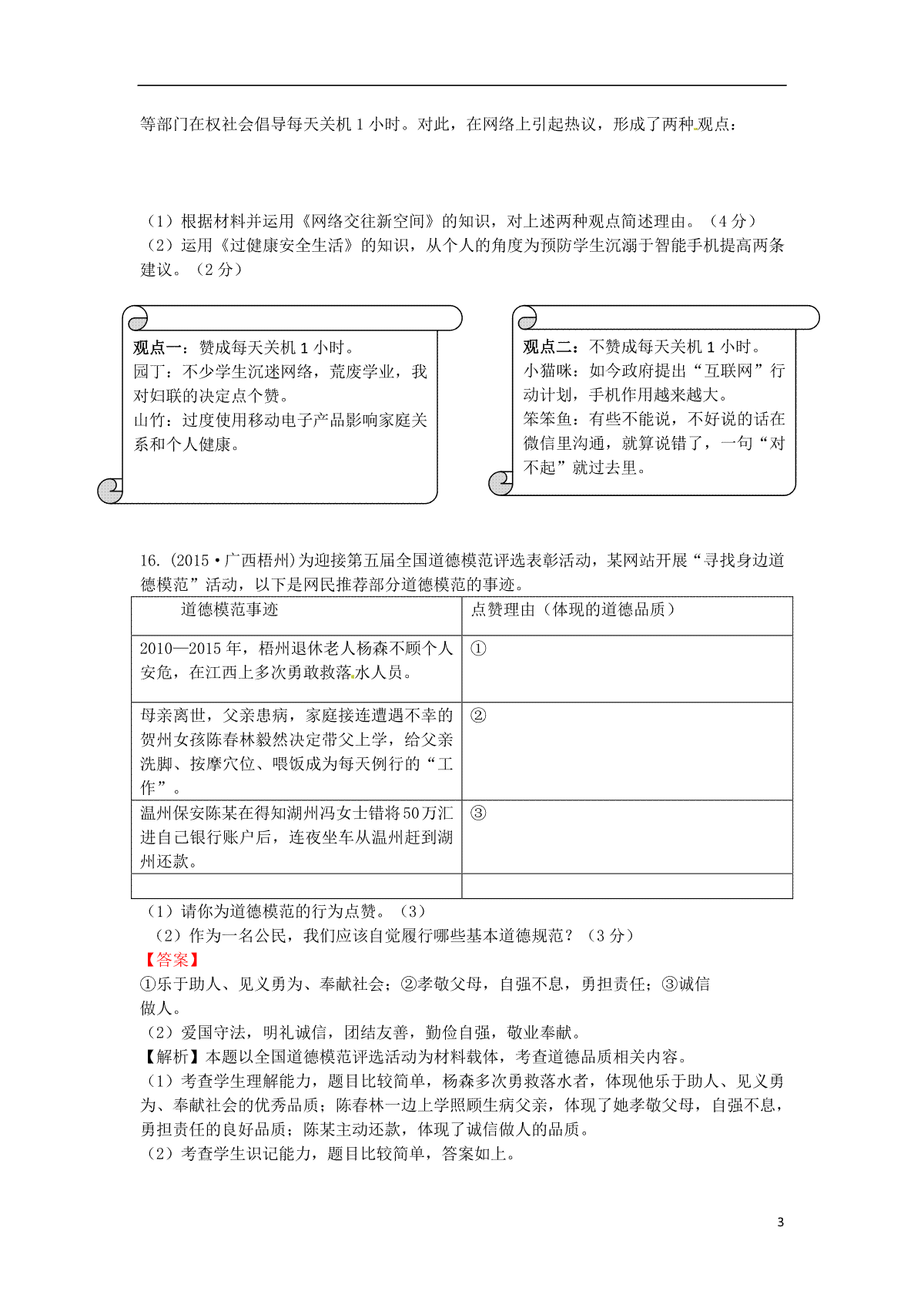 一、广西梧州市2015年中考政治真题试题(含答案)