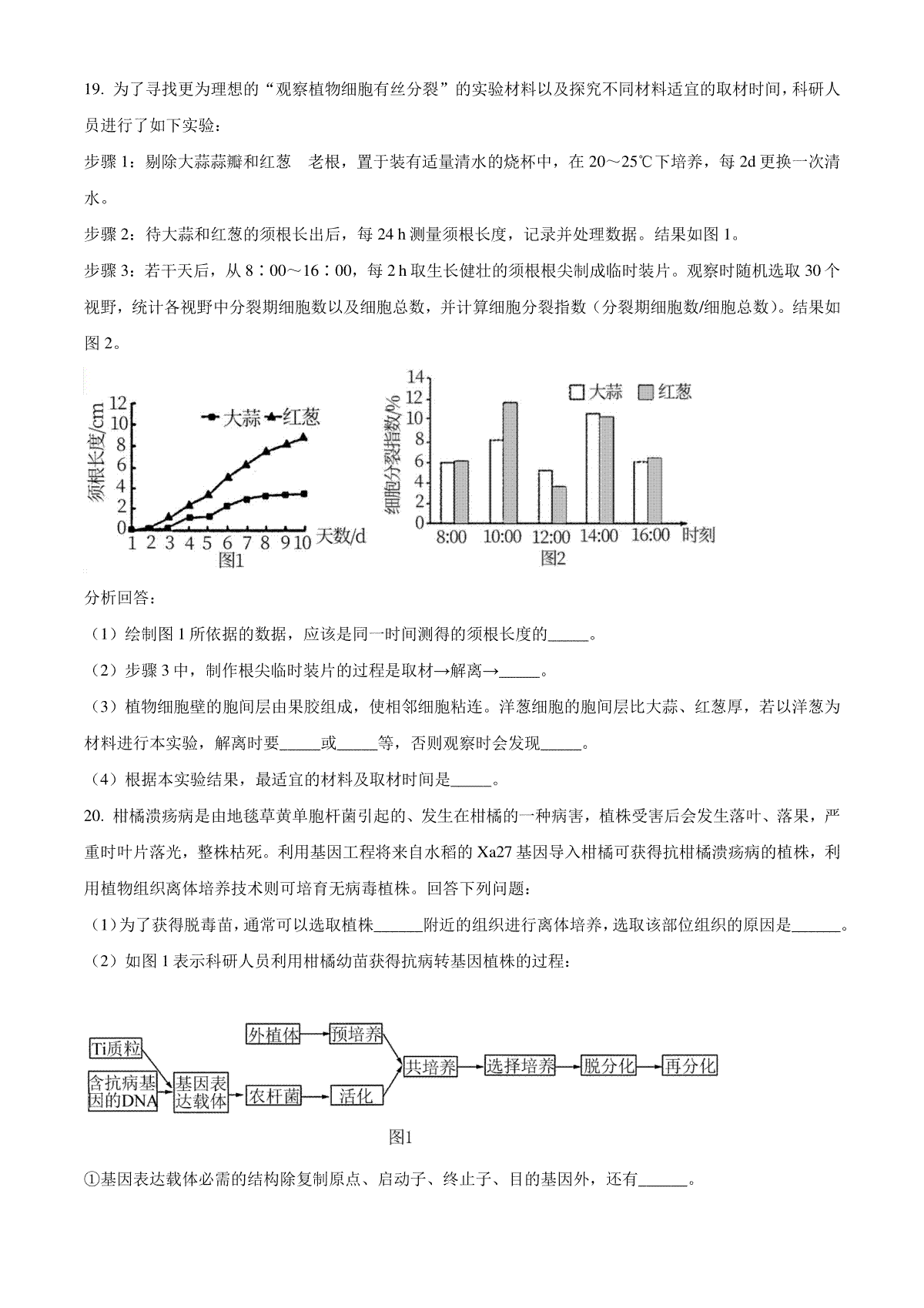 一、重庆市乌江新高考协作体2022-2023学年高二下学期期末生物试题 Word版无答案