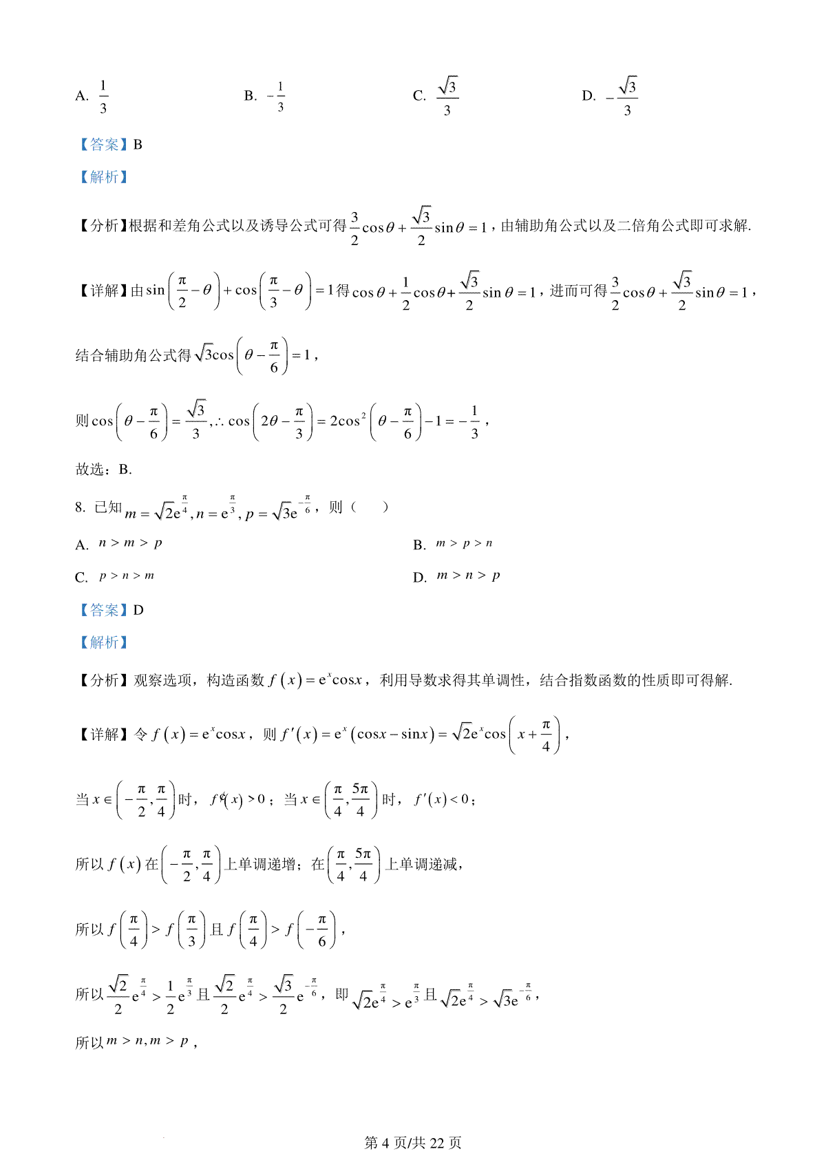 如果你想下载精品解析:辽宁省沈阳市2023-2024学年高三上学期教学质量监测(一)数学试题(解析版)DOC或PDF版,请点击本文末链接!