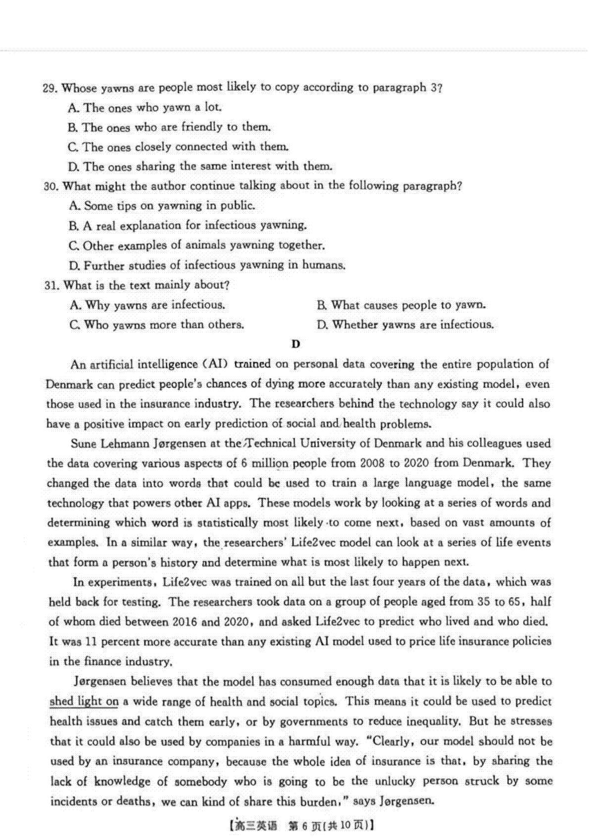 如果你想下载英语-山西省晋城市2023-2024学年高三上学期第一次模拟考试(期末)DOC或PDF版,请点击本文末链接!