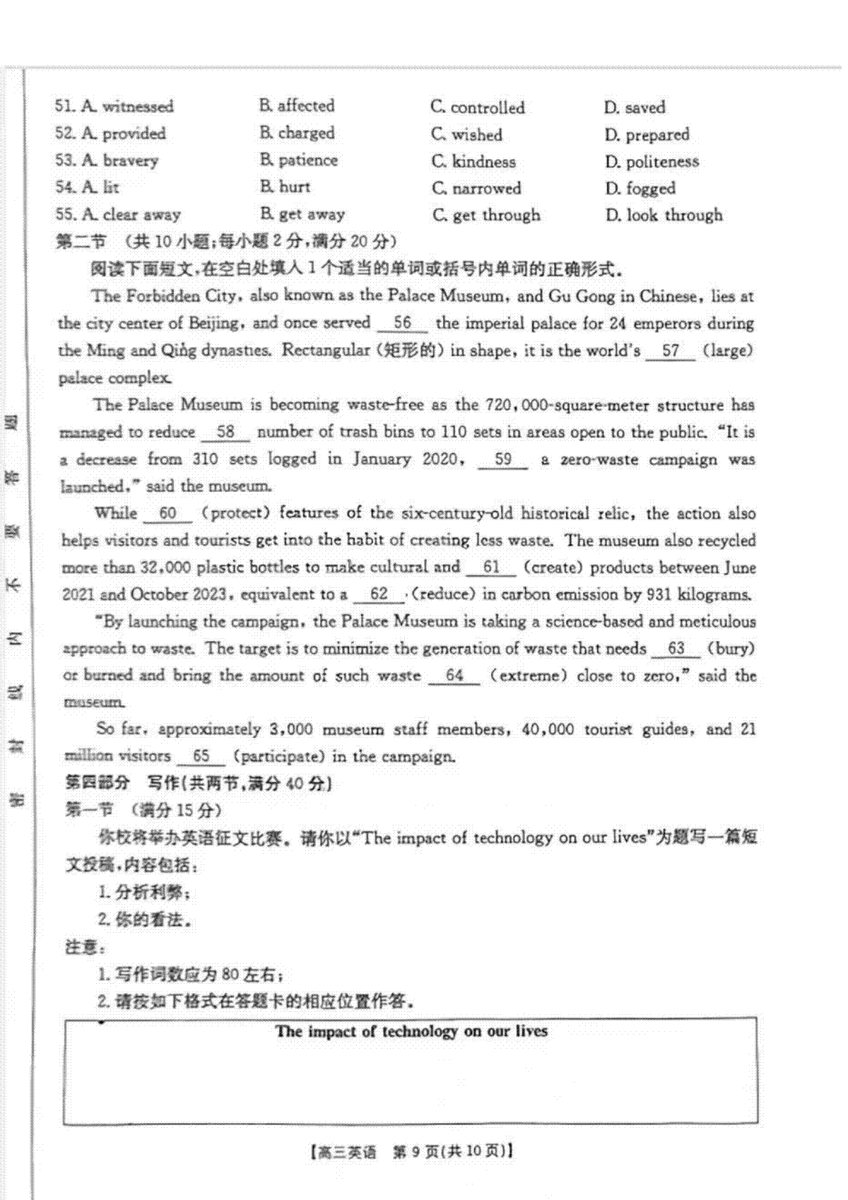 英语-山西省晋城市2023-2024学年高三上学期第一次模拟考试(期末)于近期开考,本次考试对考生对知识的掌握参考价值大,为了方便大家复习掌握错题!小编在下文为大家准备了英语-山西省晋城市2023-2024学年高三上学期第一次模拟考试(期末)试卷及答案解析详情,仅供考生参考。