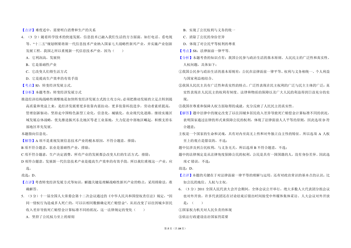 一、2011年全国统一高考政治试卷(新课标)(含解析版)