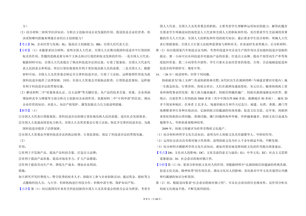 如果你想下载2011年全国统一高考政治试卷(新课标)(含解析版)DOC或PDF版,请点击本文末链接!