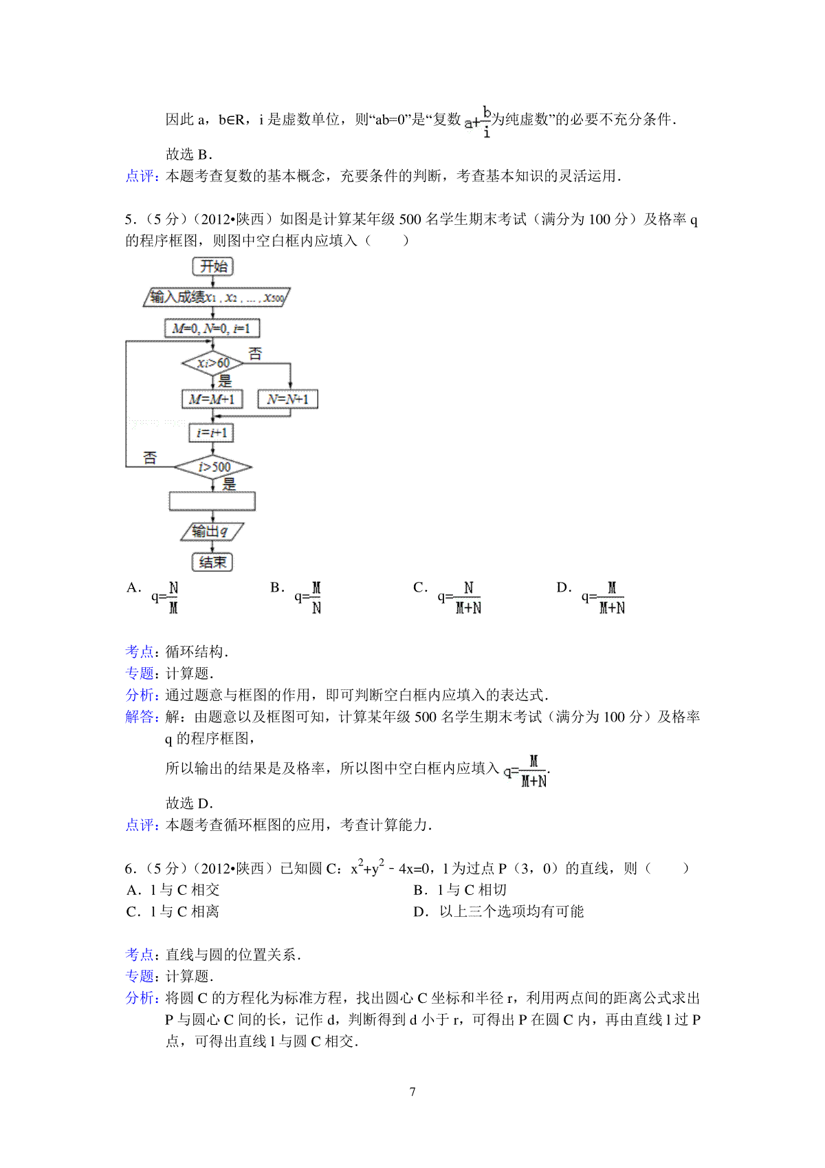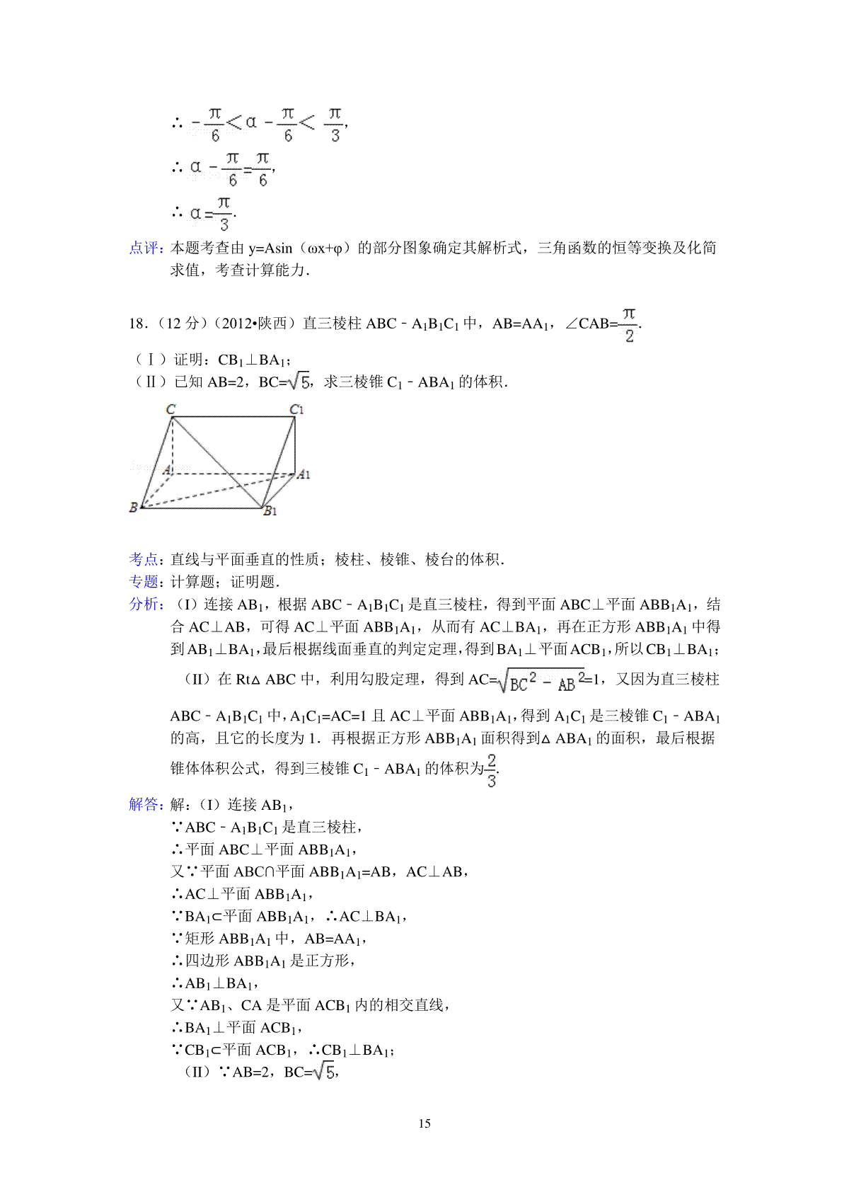 一、2012年高考文科数学陕西卷试题与答案