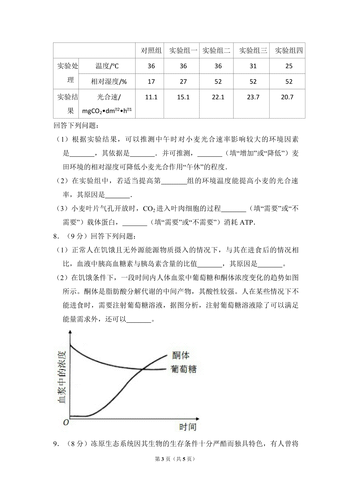 一、2016年全国统一高考生物试卷(新课标ⅲ)(原卷版)