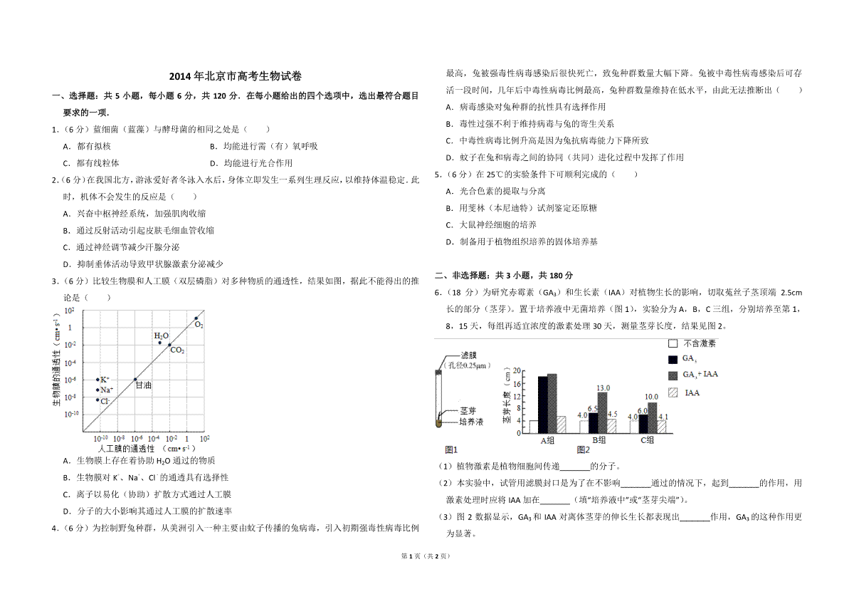 如果你想下载2014年北京市高考生物试卷(原卷版)DOC或PDF版,请点击本文末链接!
