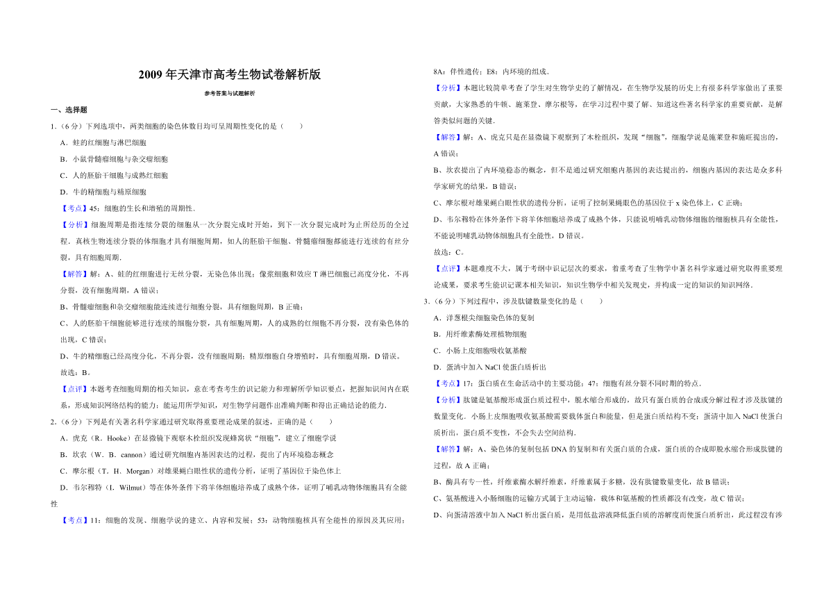 下载2009年天津市高考生物试卷解析版 PDF格式或doc
