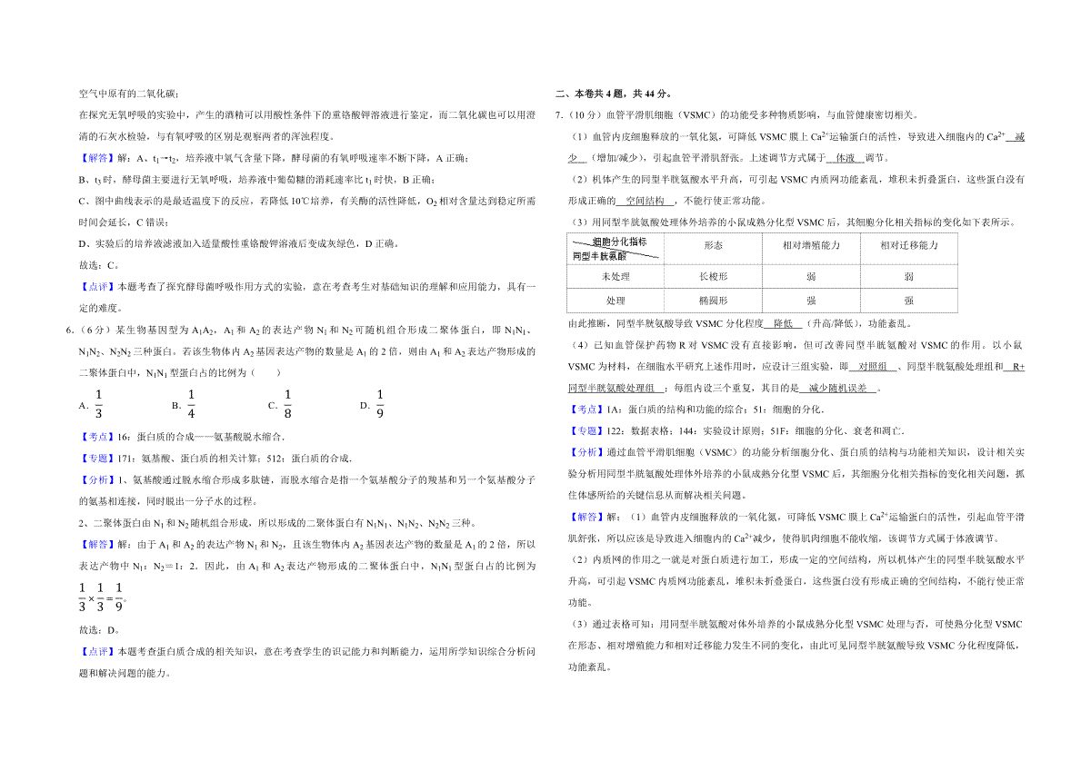 2018年天津市高考生物试卷解析版