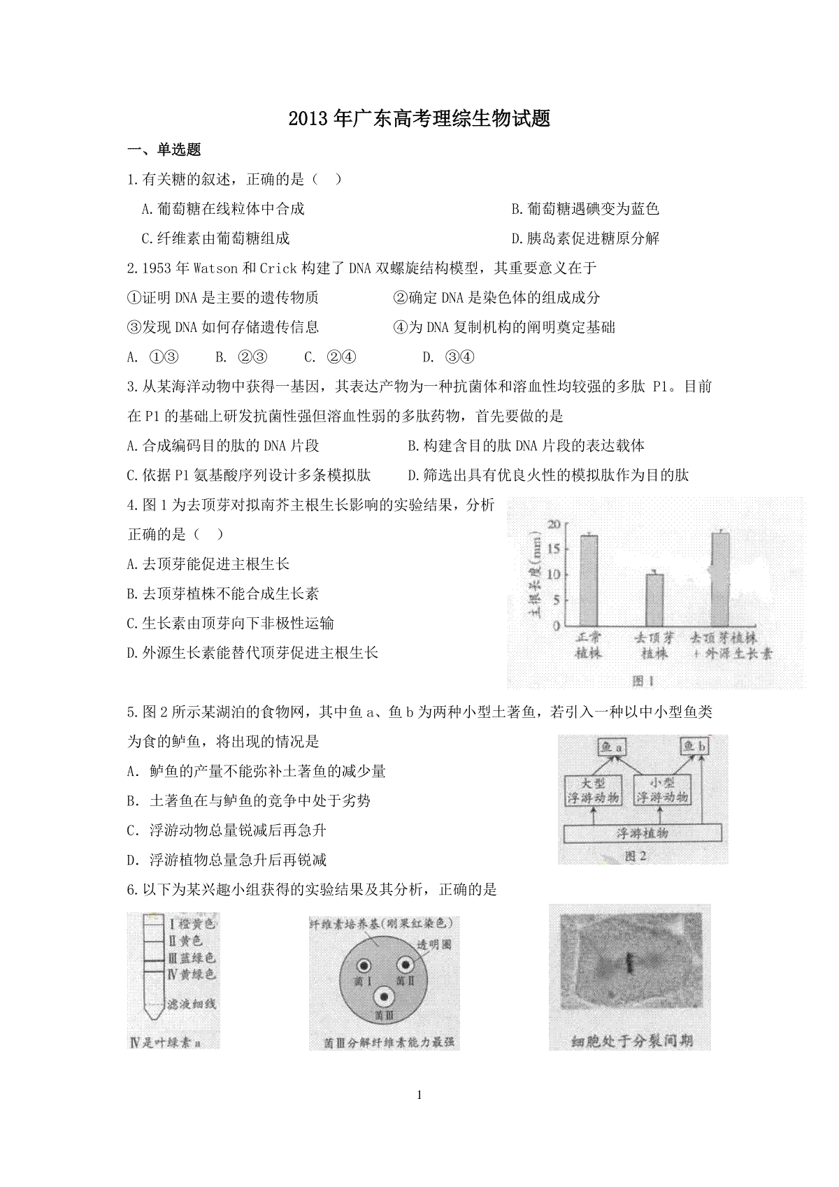 下载2013年广东高考生物试题及答案PDF格式或doc