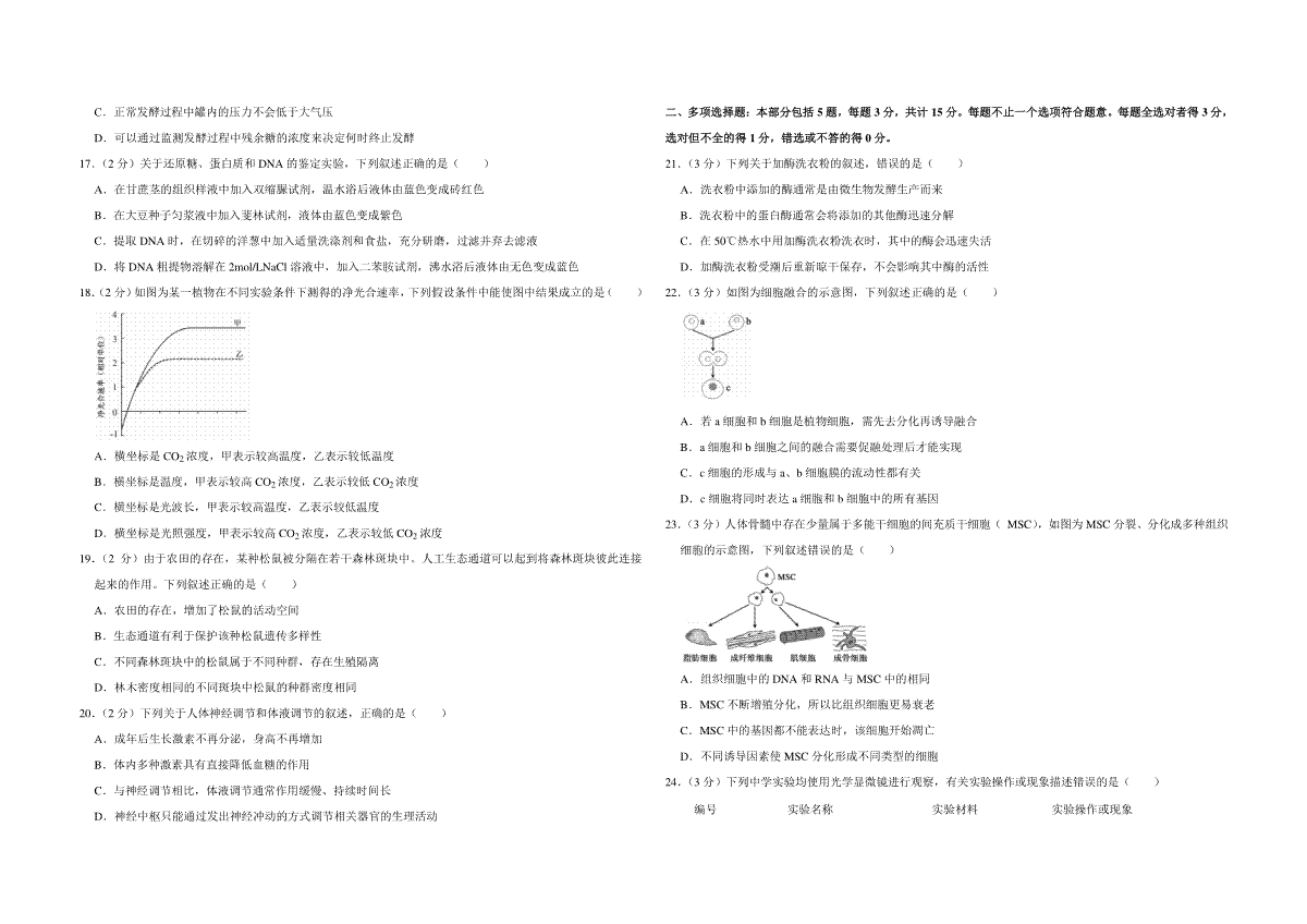 一、2018年江苏省高考生物试卷