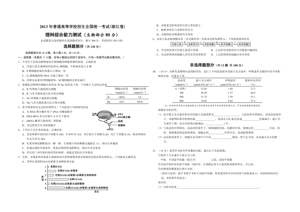 下载2013年浙江省高考生物(原卷版)PDF格式或doc