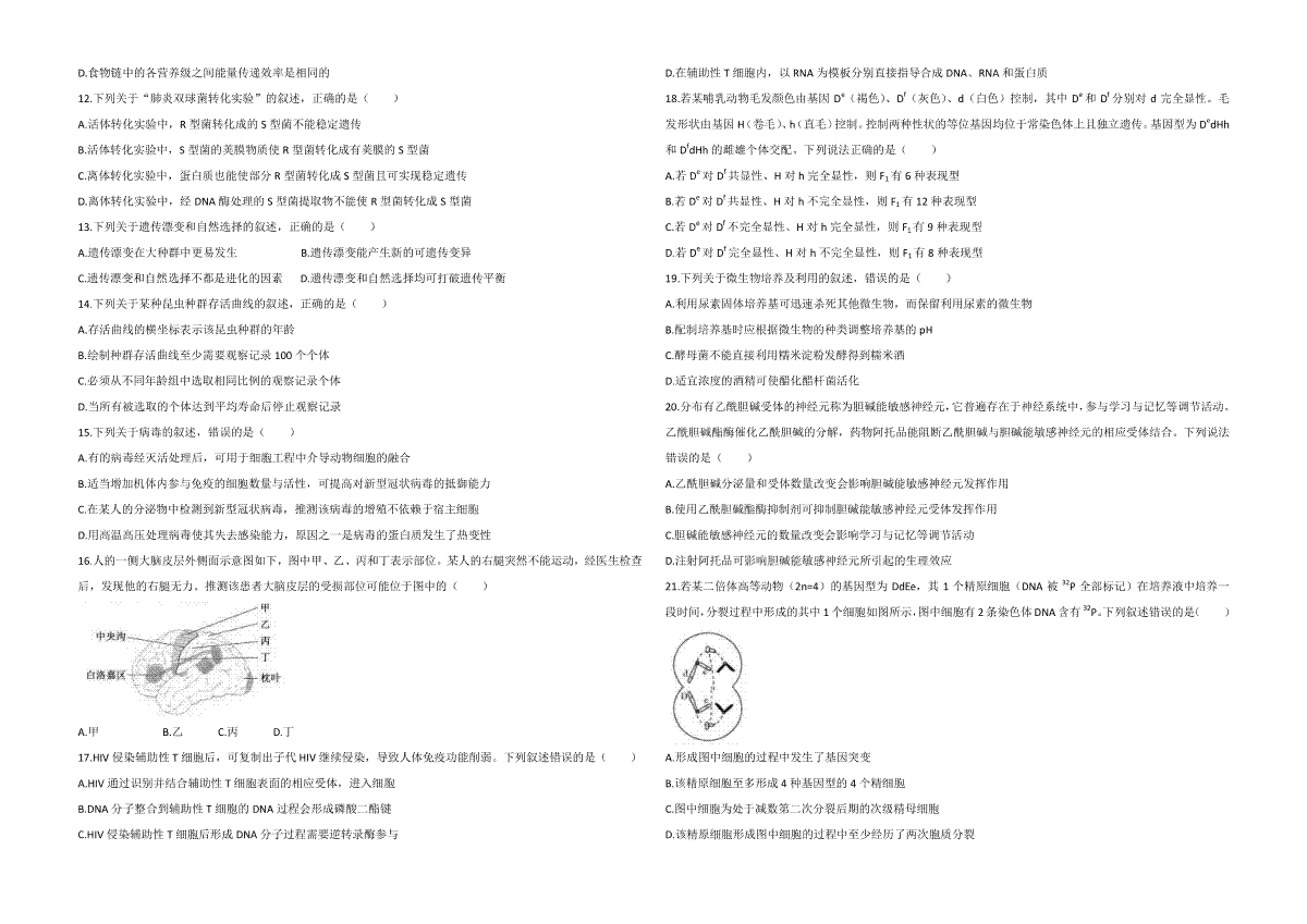 如果你想下载2020年浙江省高考生物【7月】(原卷版)DOC或PDF版,请点击本文末链接!