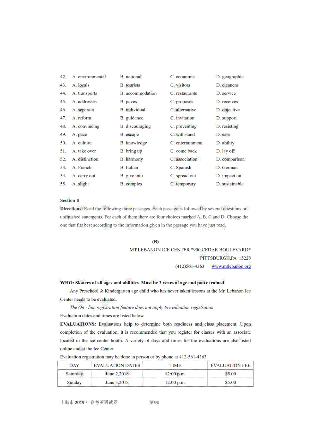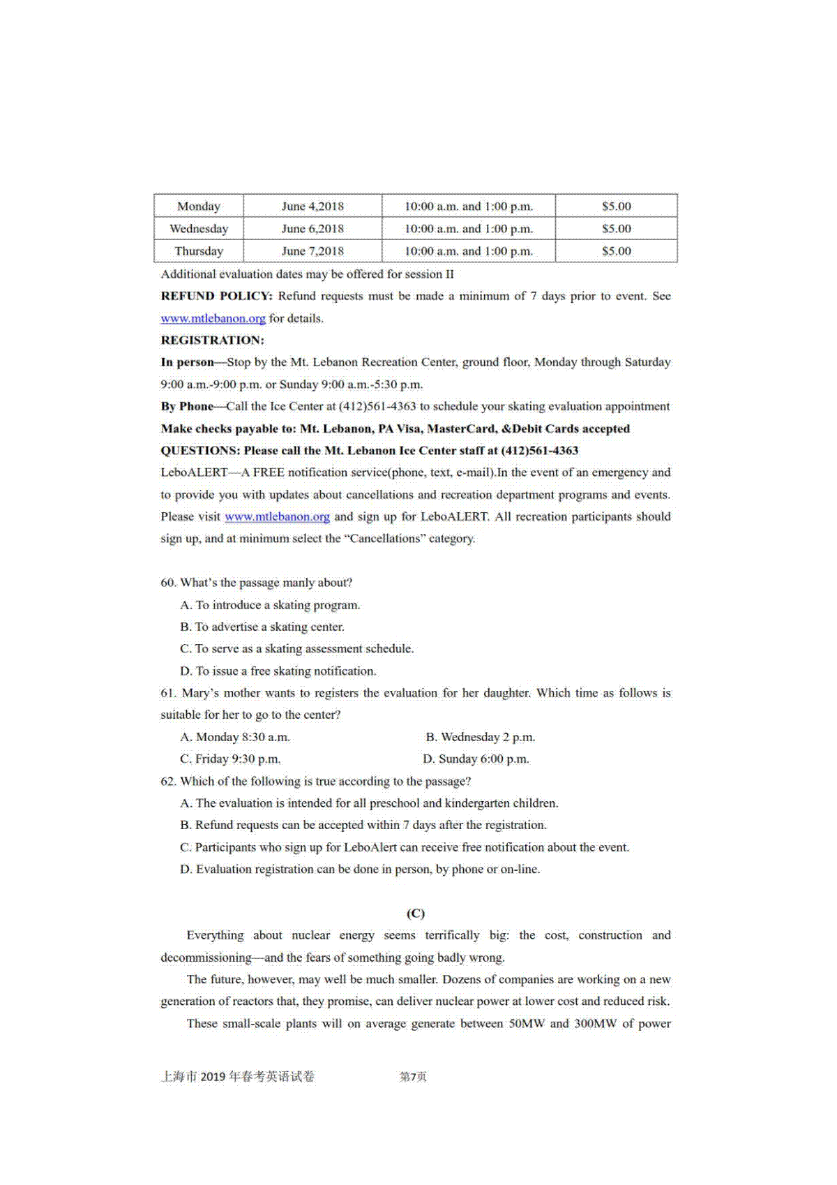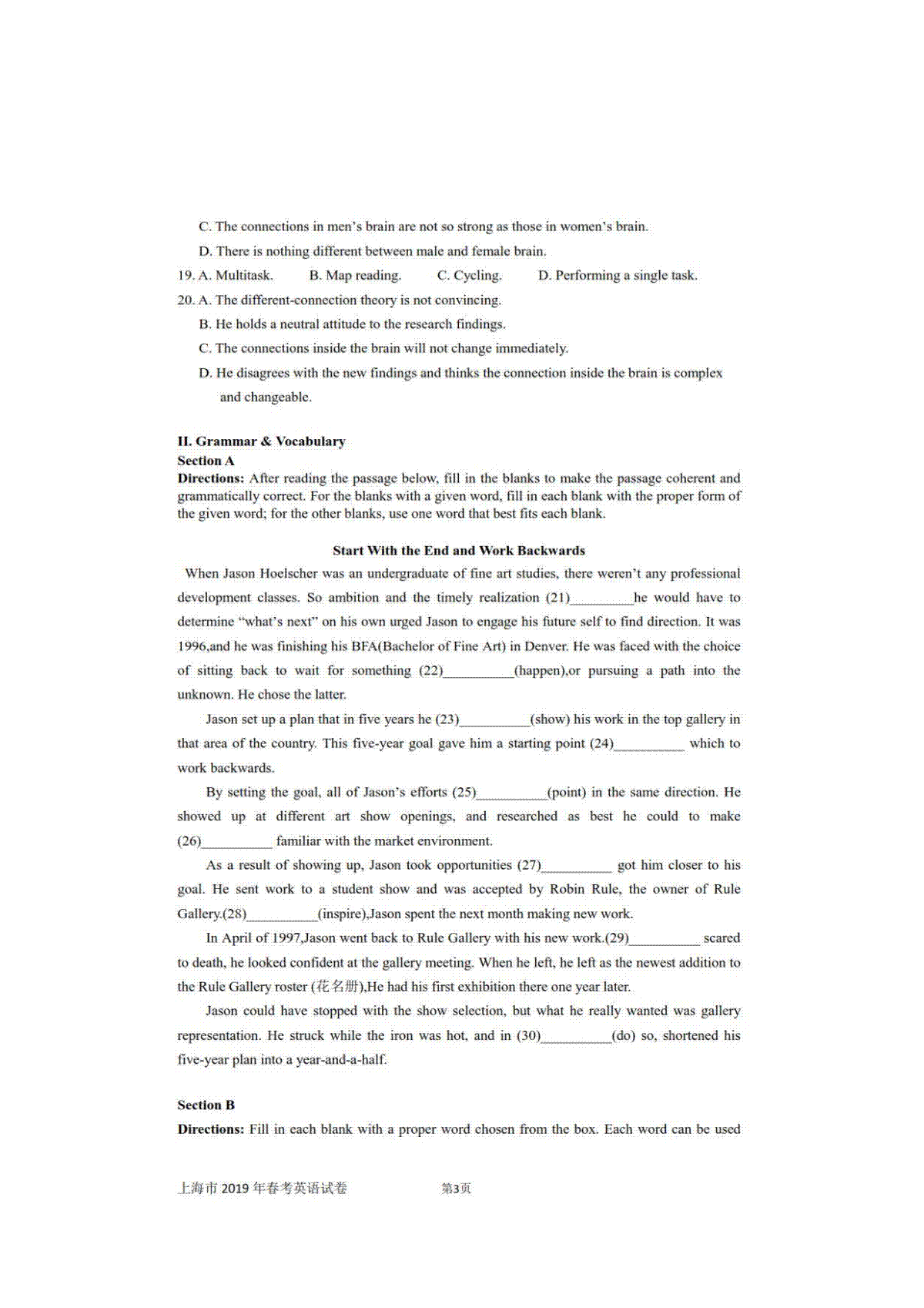 一、上海2019年高三春考英语卷(带参考答案作文答案,图片版)