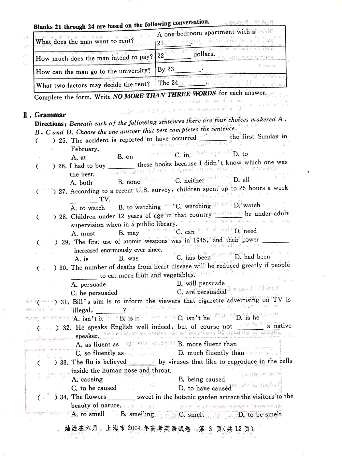 如果你想下载2004年上海高考英语真题试卷(图片版)DOC或PDF版,请点击本文末链接!