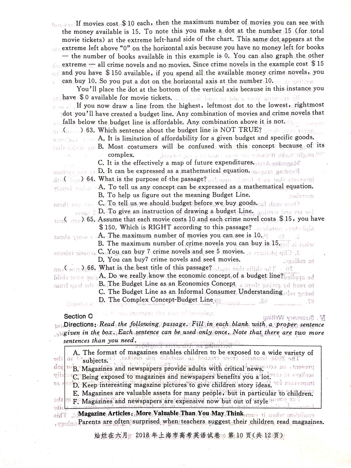 如果你想下载2018年上海高考英语真题试卷(图片版)DOC或PDF版,请点击本文末链接!