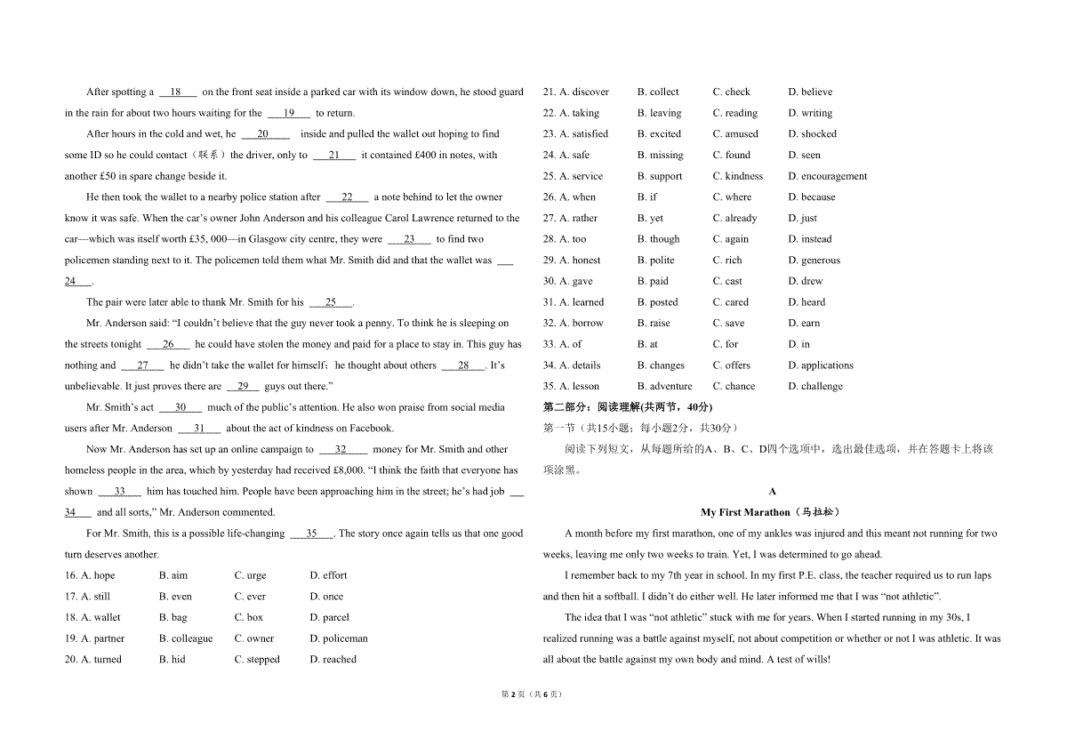 一、2018年北京市高考英语试卷(机考 无听力)(原卷版)