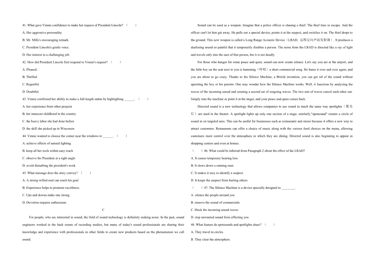 一、2020年天津市高考英语试卷(第二次)