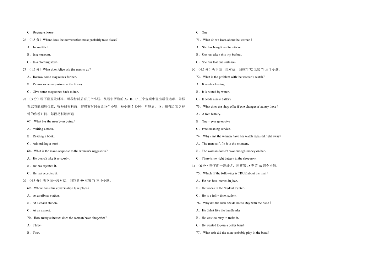 当前位置:首页 > 高中试卷 > 2009年天津市高考英语试卷