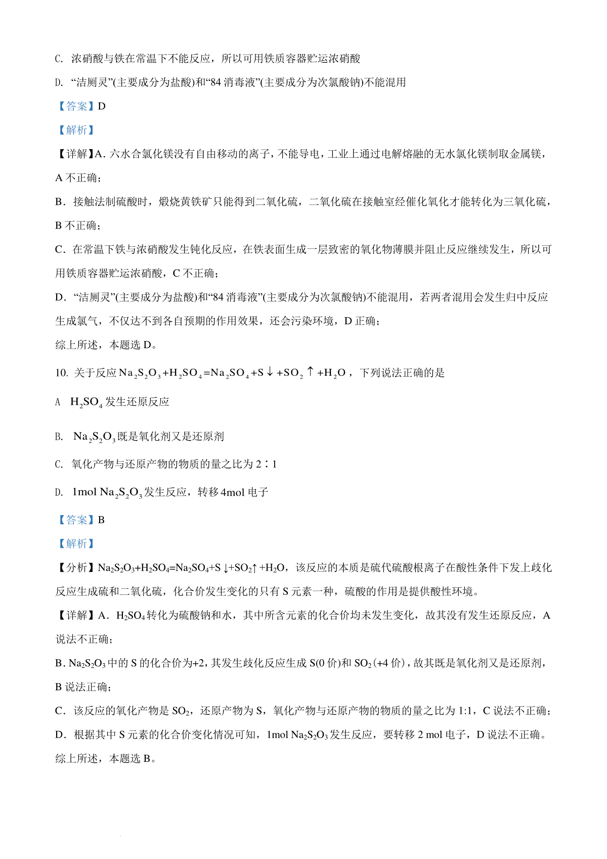 当前位置:首页 > 高中试卷 > 精品解析:2022年6月浙江省普通高校招生选考化学试题(解析版)