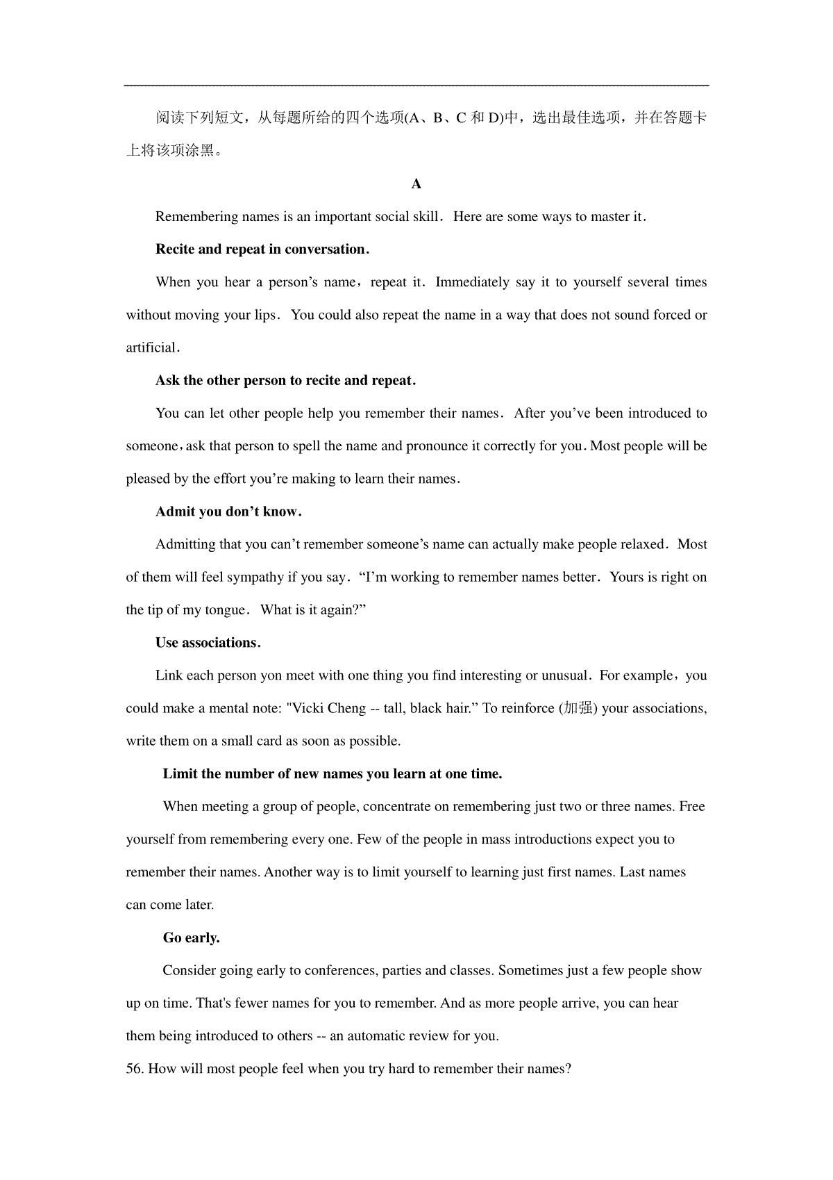 当前位置:首页 > 高中试卷 > 2009年安徽高考英语试卷及答案