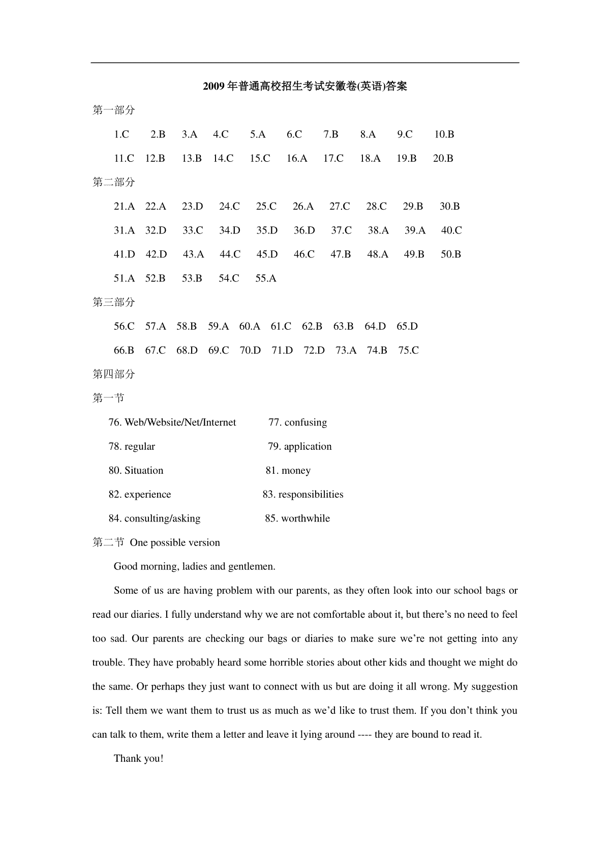如果你想下载2009年安徽高考英语试卷及答案DOC或PDF版,请点击本文末链接!