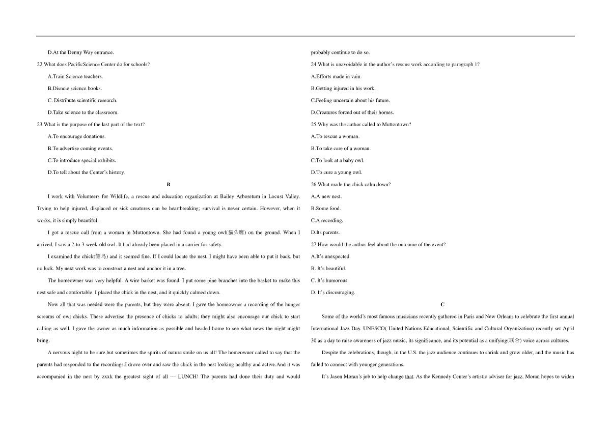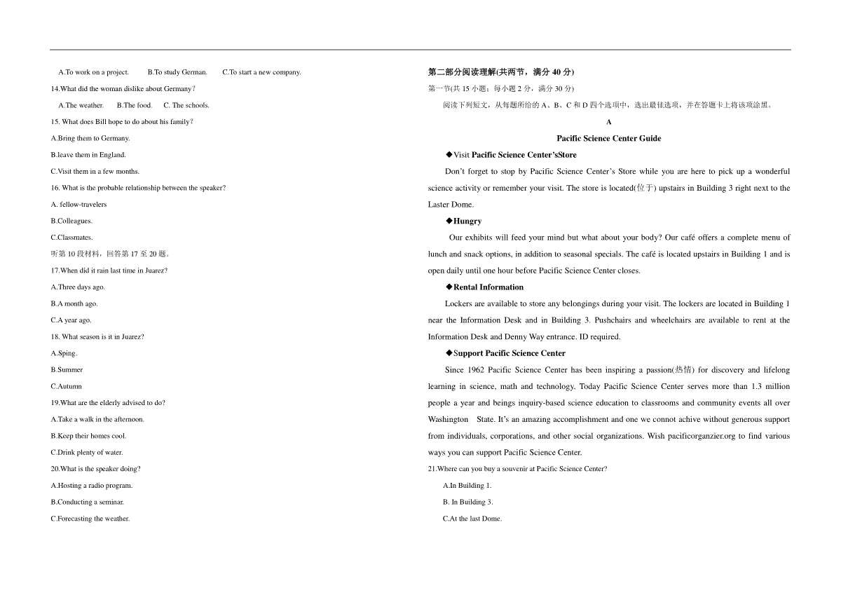 一、2017年广东高考英语(原卷版)