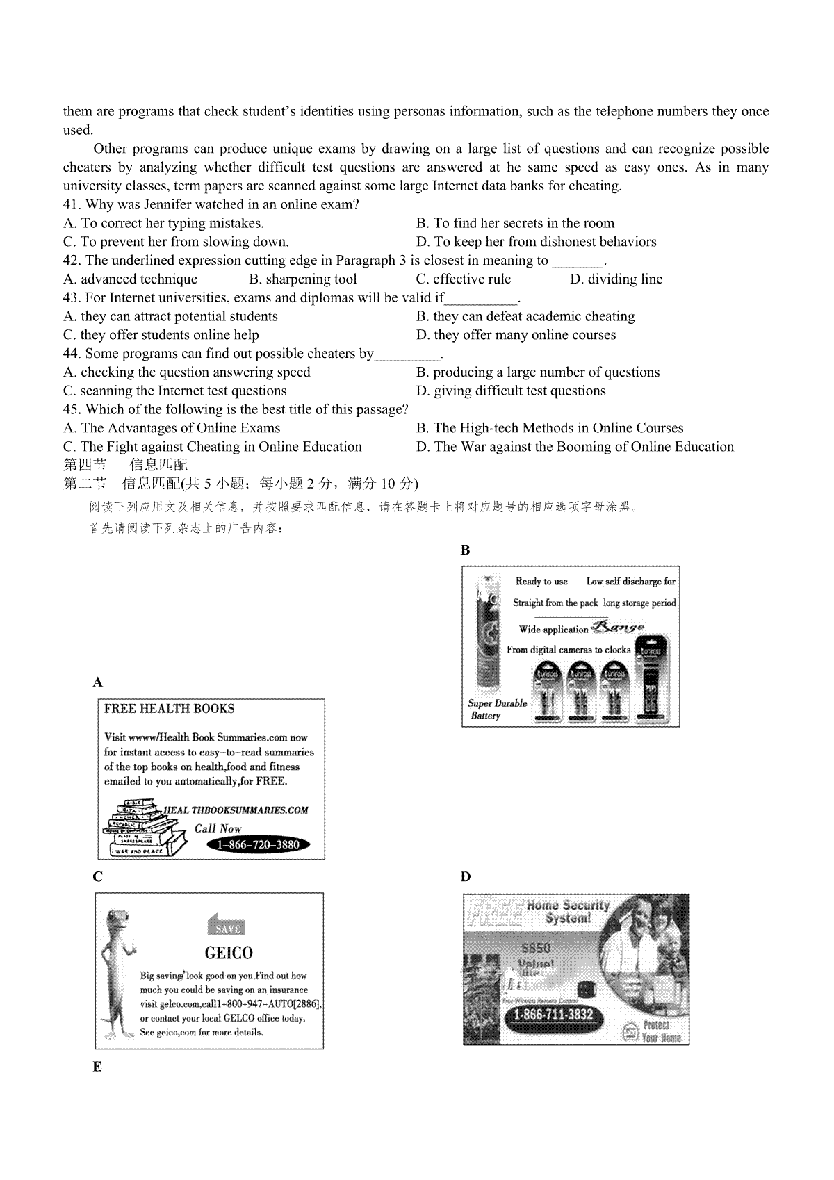 一、2013年广东高考英语(原卷版)