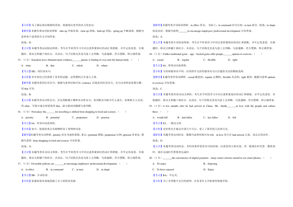 一、2019年江苏省高考英语试卷解析版