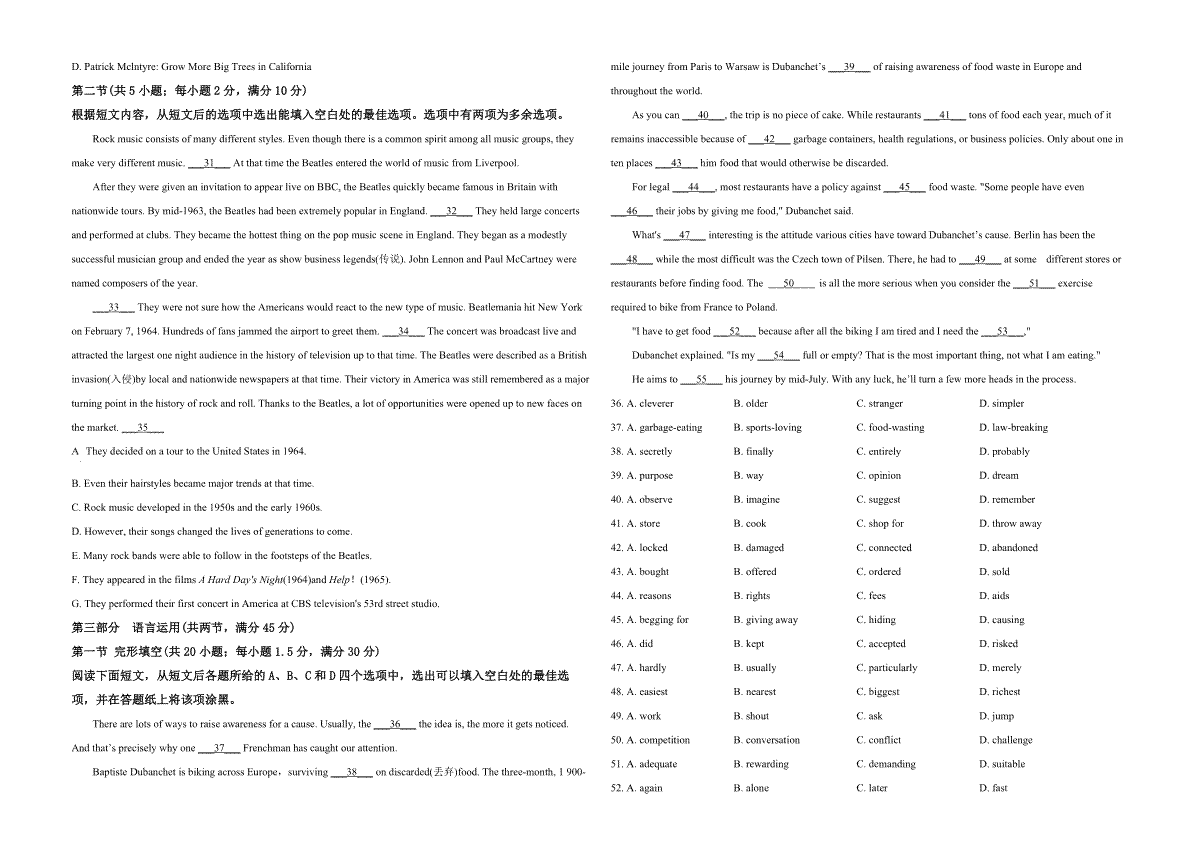 一、2019年浙江省高考英语【6月】(原卷版)