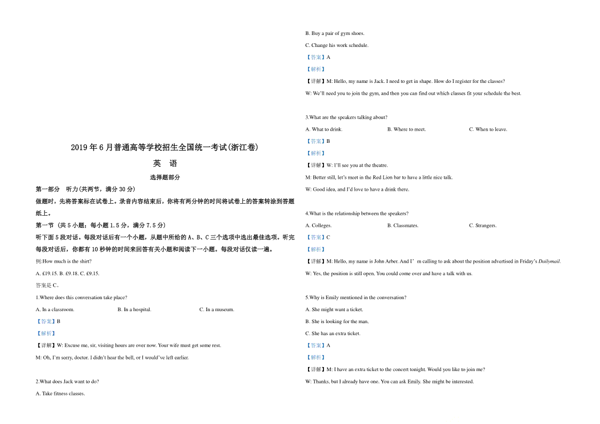 如果你想下载2019年浙江省高考英语【6月】(含解析版)DOC或PDF版,请点击本文末链接!