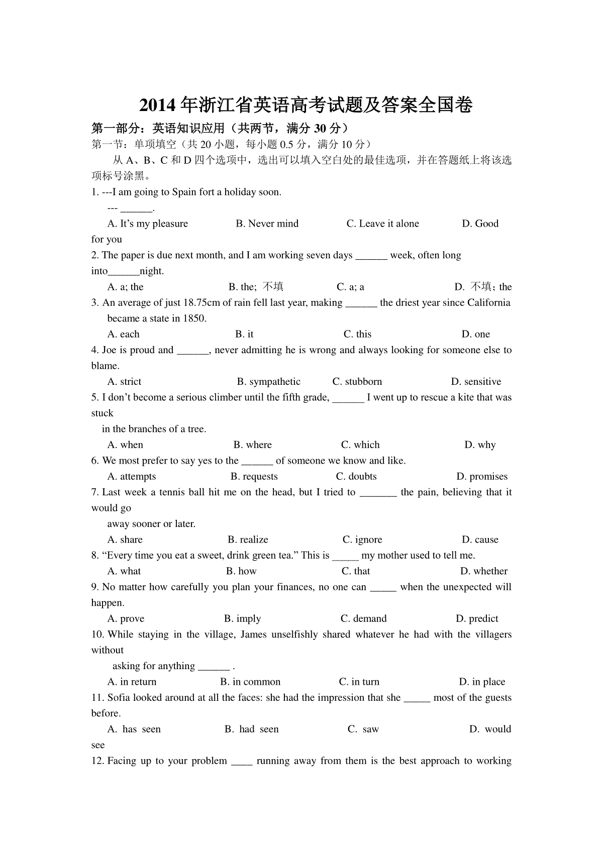 如果你想下载2014年浙江省高考英语(含解析版)DOC或PDF版,请点击本文末链接!