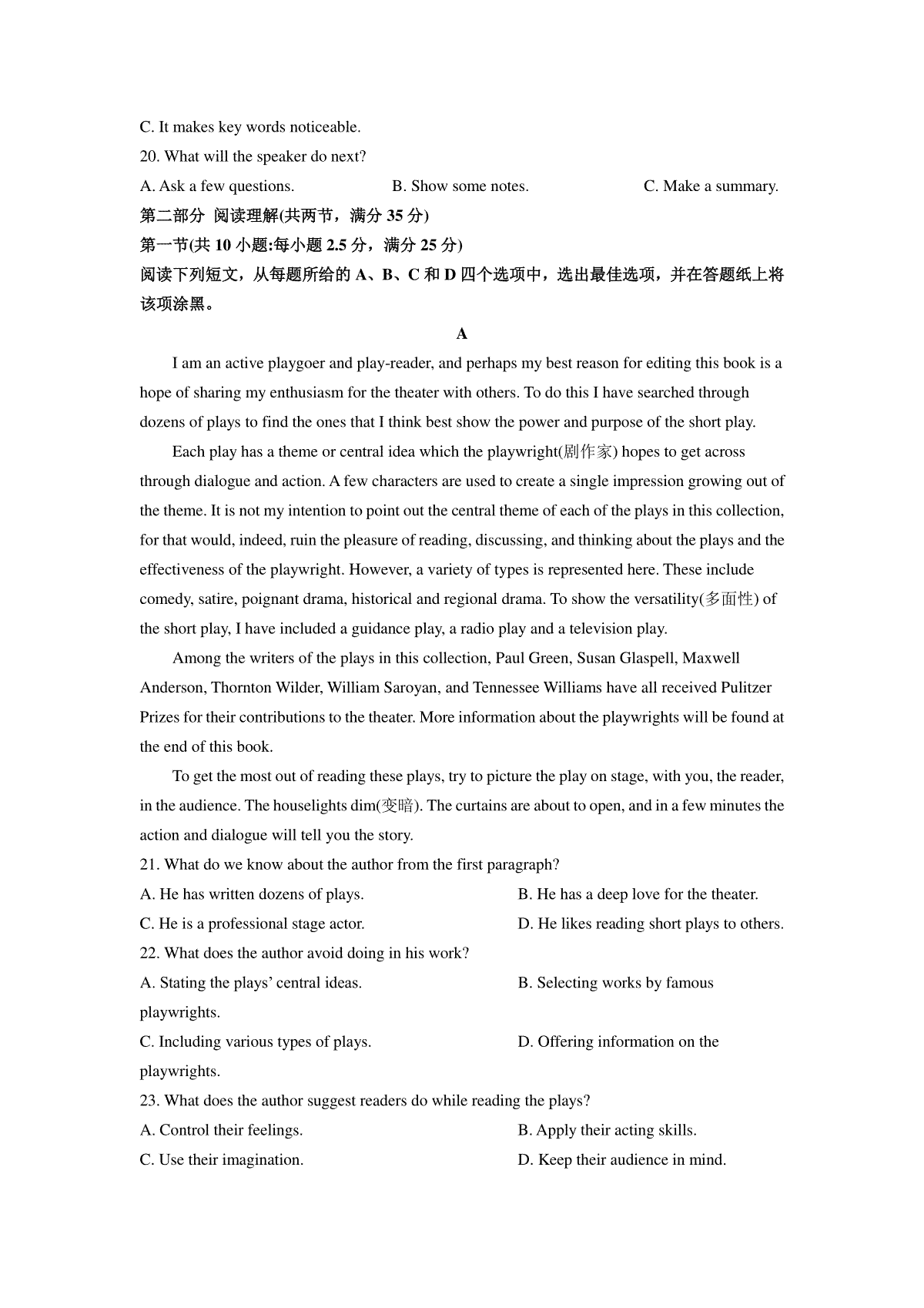 当前位置:首页 > 高中试卷 > 2020年浙江省高考英语【7月】(含解析版)