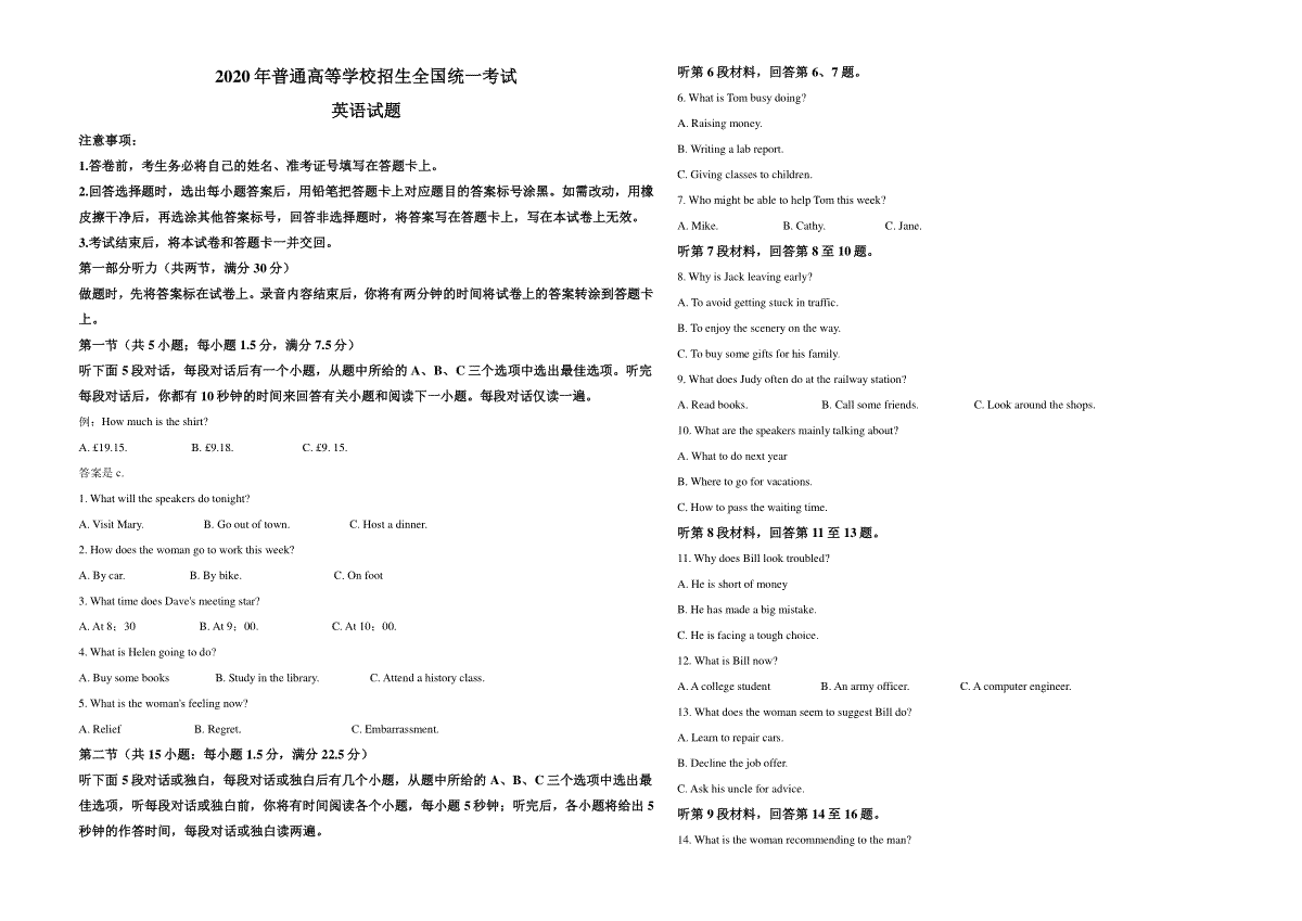 当前位置:首页 > 高中试卷 > 2020年海南高考英语试题和答案