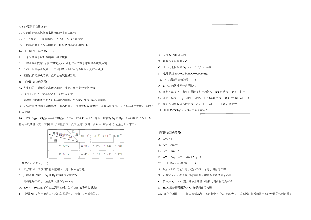 一、2017年浙江省高考化学【11月】(原卷版)