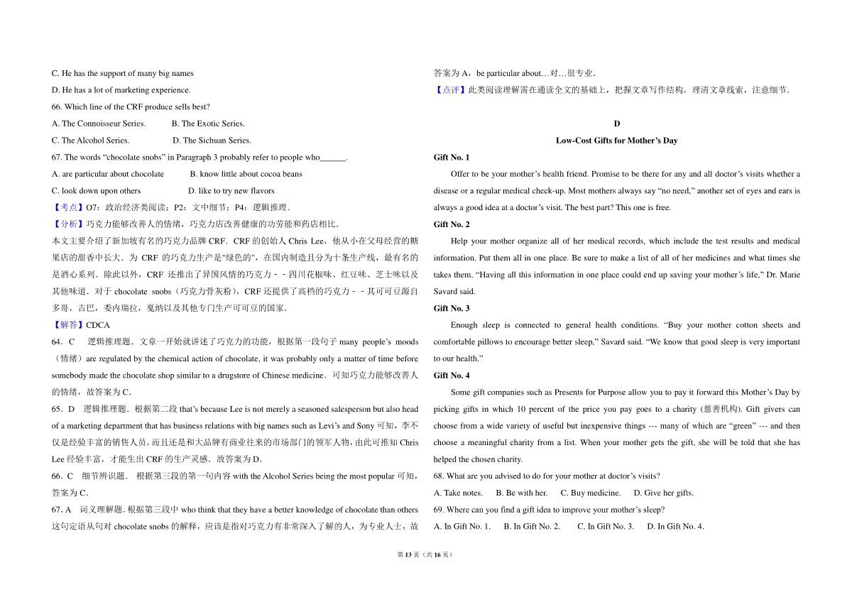 如果你想下载2013年高考英语试卷(新课标ii)(含解析版)DOC或PDF版,请点击本文末链接!