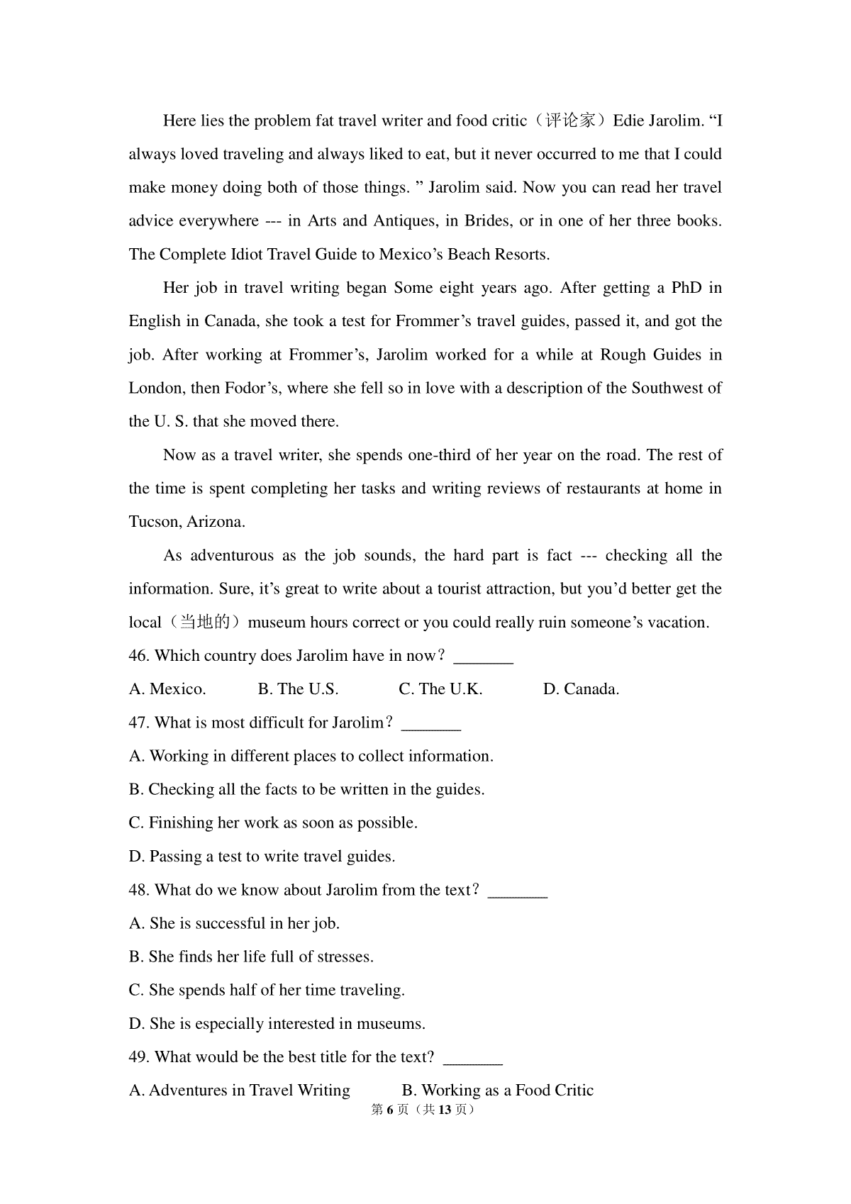 一、2010年高考英语试卷(新课标Ⅱ)(原卷版)