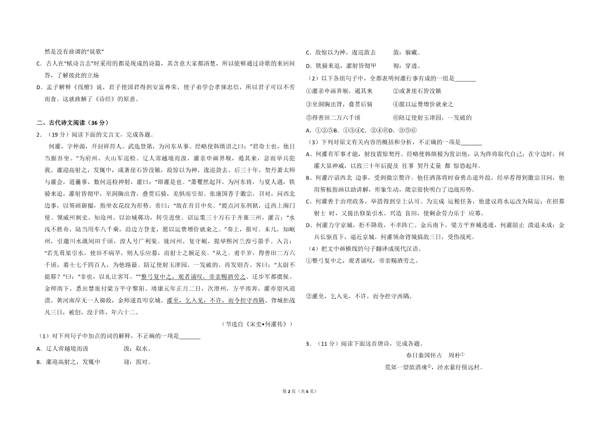 一、2011年全国统一高考语文试卷(新课标)(原卷版)