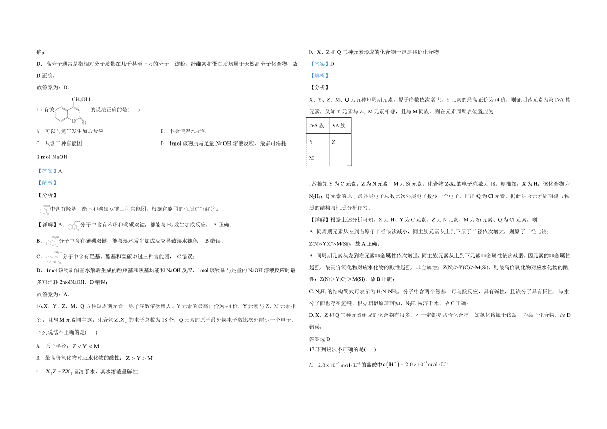 一、2020年浙江省高考化学【7月】(含解析版)