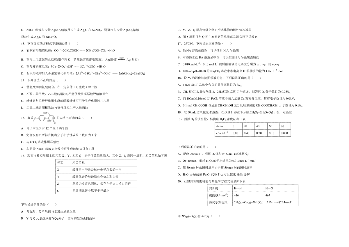 一、2021年浙江省高考化学【1月】(含解析版)