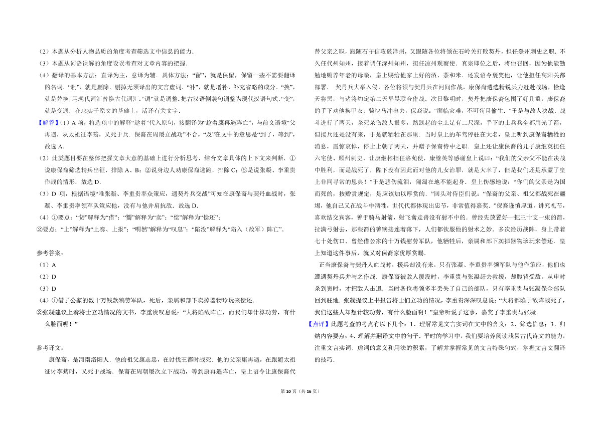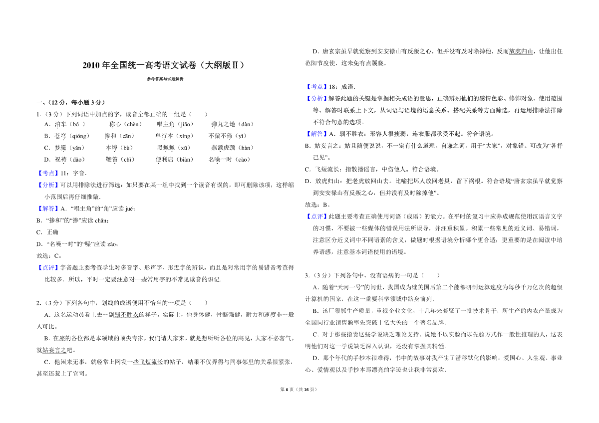 一、2010年全国统一高考语文试卷(大纲版ⅱ)(含解析版)