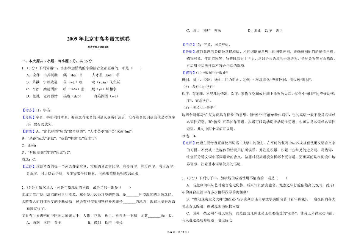 如果你想下载2009年北京市高考语文试卷(含解析版)DOC或PDF版,请点击本文末链接!