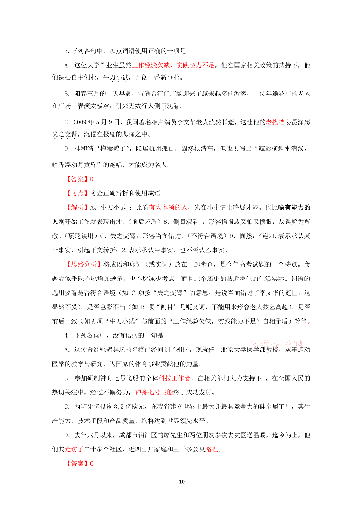 如果你想下载2009年高考四川语文试题及参考答案DOC或PDF版,请点击本文末链接!