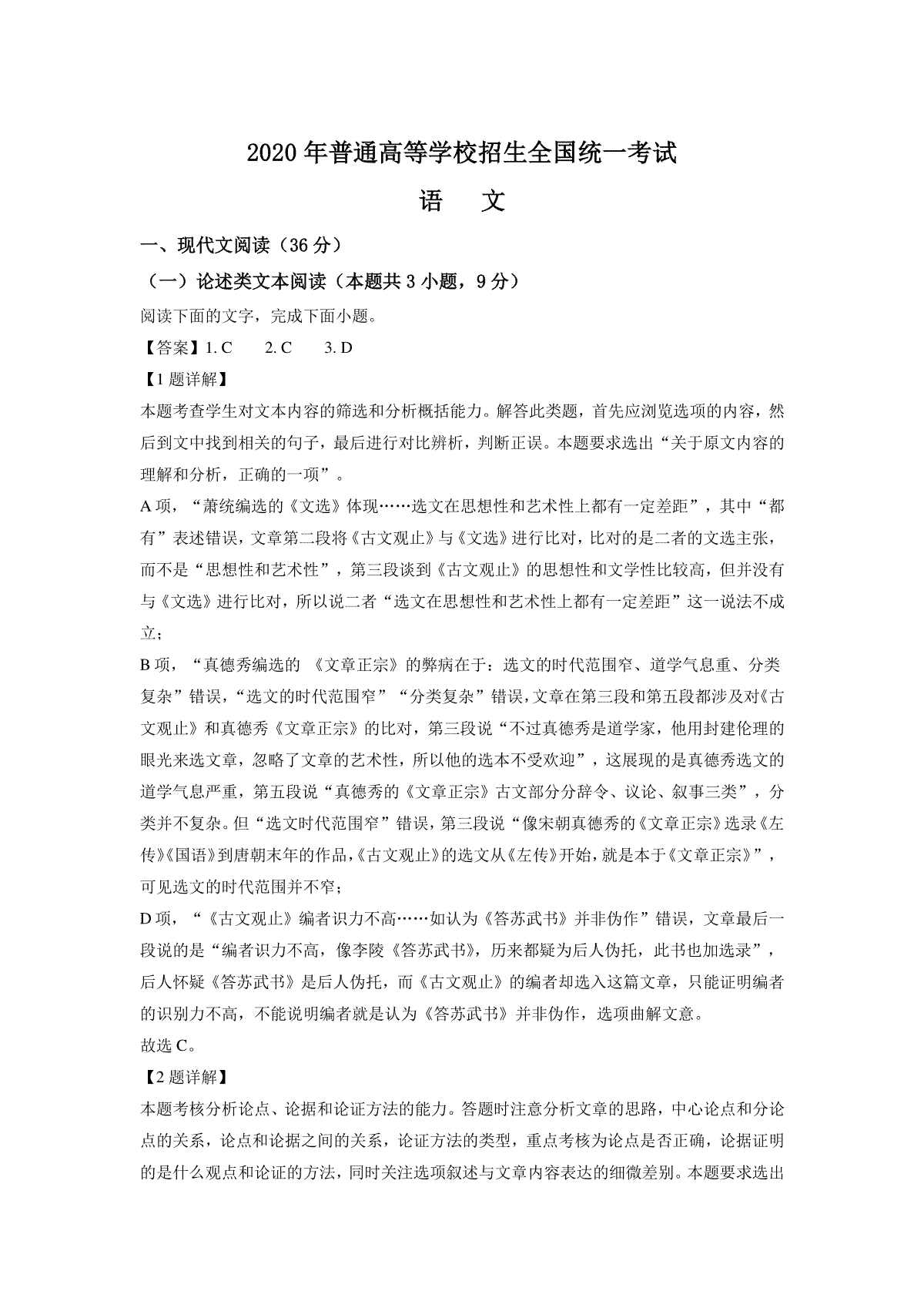 一、2020年高考四川语文试题及参考答案