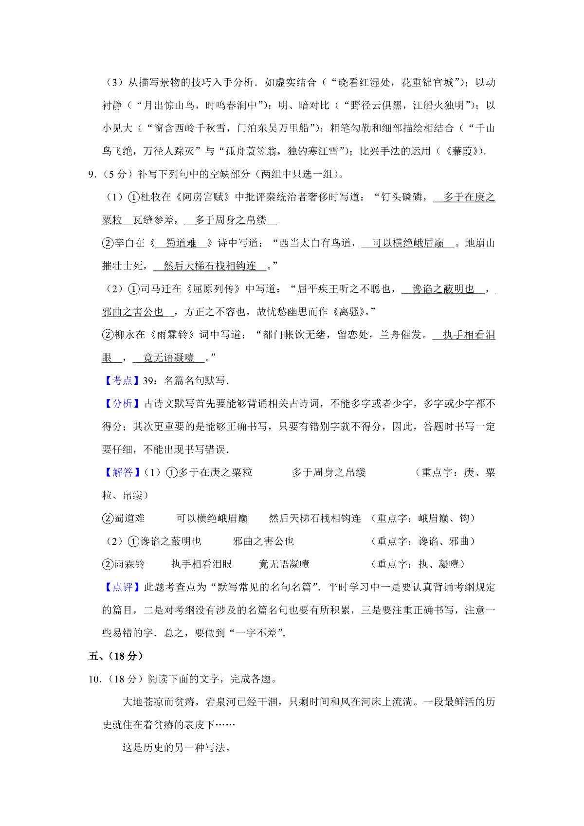 2008年天津市高考语文试卷解析版