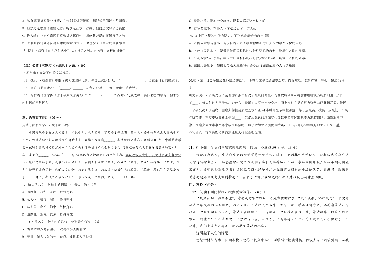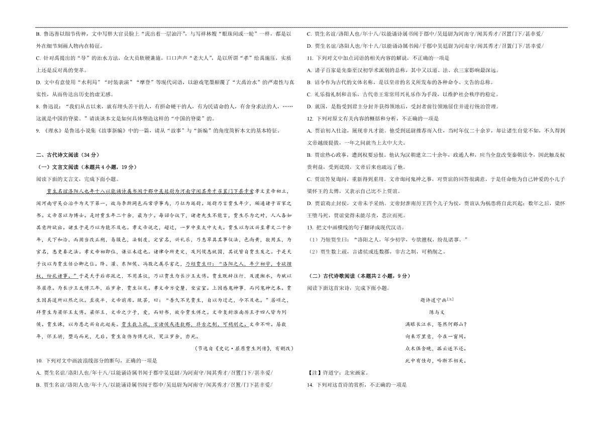 一、2019年高考真题 语文(山东卷)(原卷版)