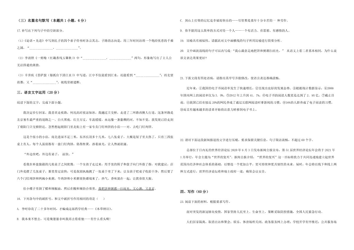 一、2020年高考真题 语文(山东卷)(含解析版)