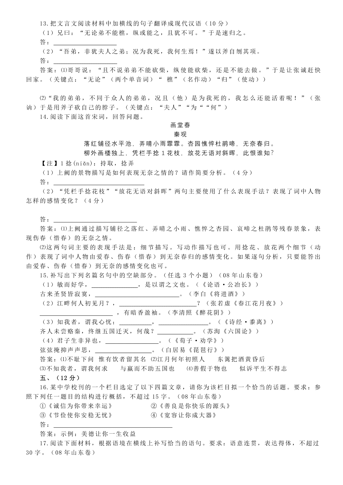 一、2008年高考真题 语文(山东卷)(含解析版)