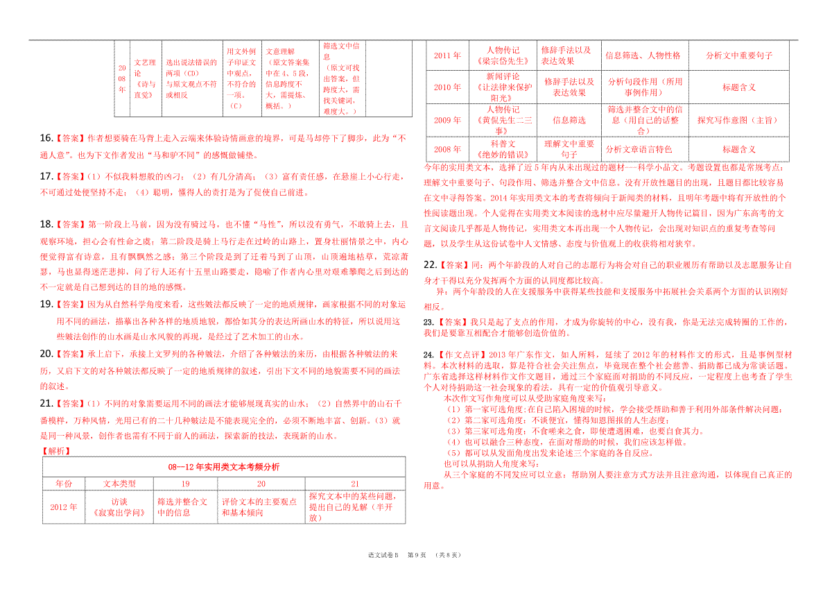 下载2013年广东高考语文试题及答案PDF格式或doc